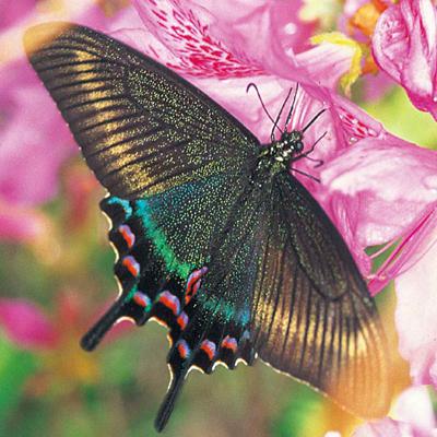 날개 편 길이 45~140mm. 대형나비로 크기의 변이가 많다. 날개는 검으나 녹색, 청색 등 금속성의 비늘가루가 있다. 제비나비와 유사하나 성표가 크고, 뒷날개 윗면에 붉은색의 반달모양 무늬가 큰 점과 날개 윗면에 있는 청록색 띠, 앞날개 아랫면의 흰 띠와 뒷날개 아랫면의 흰 띠 등으로 구별된다.