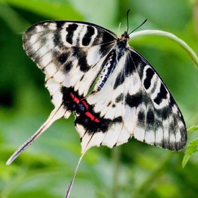 나비는 연 4~6회 출현하고, 주로 논밭 주변 또는 야산의 풀밭과 강변이나 하천변에 산다. 암컷은 먹이식물의 줄기나 잎 뒷면에 한 장소에 20~120개의 알을 낳는다. 번데기가 되는 장소는 먹이식물의 잎 뒷면, 줄기나 그 주위의 나무, 돌 등 다양하다. 먹이식물은 쥐방울덩굴이며, 번데기로 겨울나기를 한다.