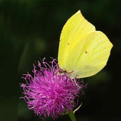 날개 편 길이 50~65mm. 날개는 노란색이며, 앞뒤날개 윗면에 각각 하나씩 붉은색 점이 있다. 앞날개 앞모서리는 가늘게 튀어나왔다.